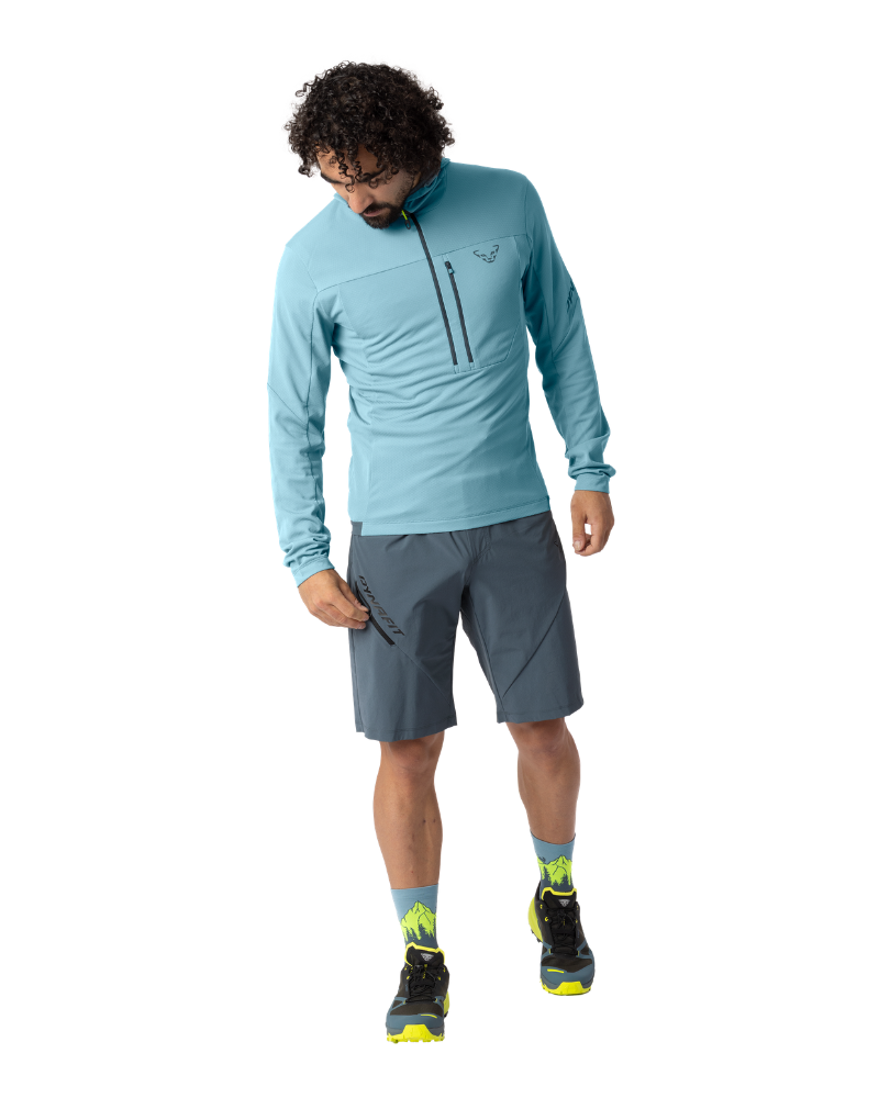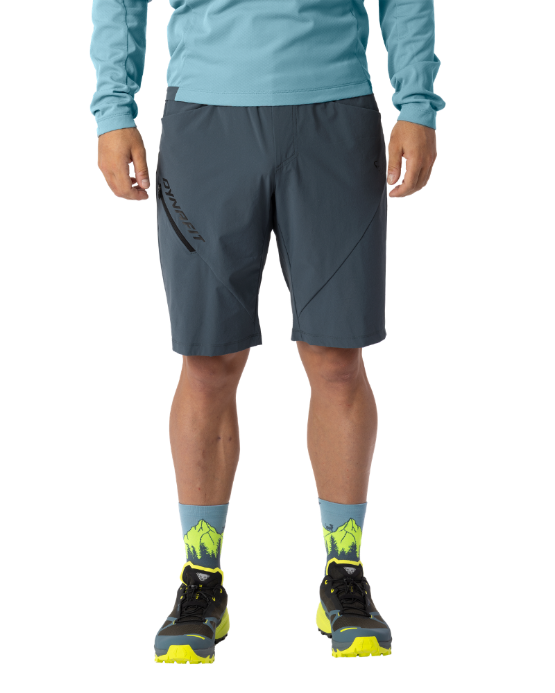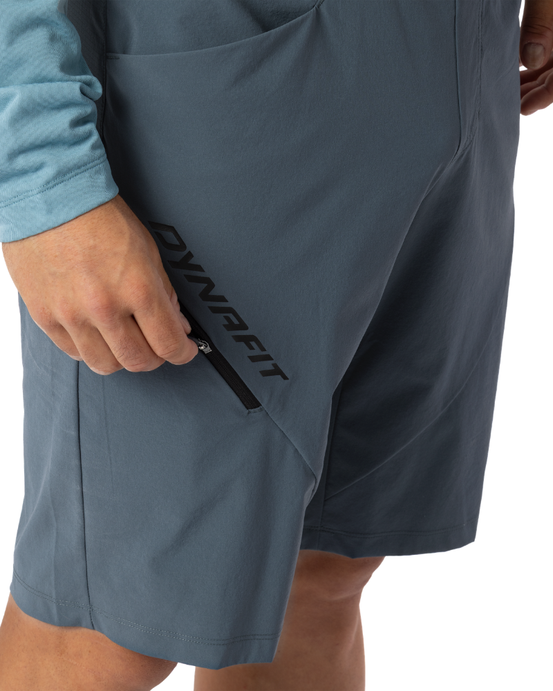 Pánske šortky DYNAFIT TRAVERSE HYBRID SHORTS M sú všestranné, rýchloschnúce hybridné šortky kombinujú odolný, vetruodolný materiál Dynastretch s priedušnou tkaninou Melted-Yarn. Elastický 4-Wege-Stretch materiál zaisťuje pohodlie a úplnú slobodu pohybu. Nastaviteľný pás zaručuje pohodlné nosenie. Súčasťou výbavy je vrecko na zips na nohavici a dve predné vrecká. Či už ide o rýchlu jazdu po práci alebo viacdňovú horskú túru – tieto šortky vám vždy dobre padnú.