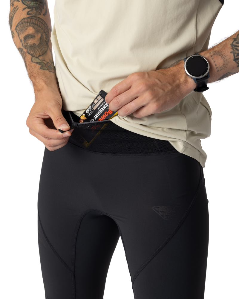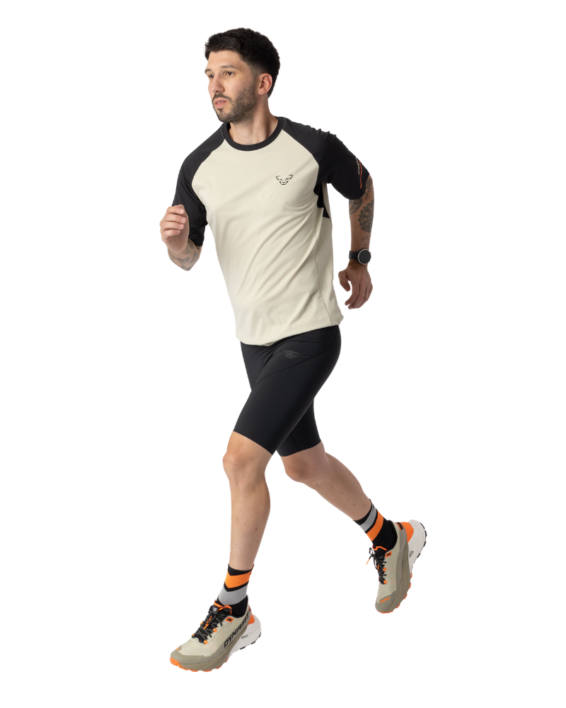 Bežecké legíny boli vyvinuté spoločne s tímom športovcov DYNAFIT. Taliansky strečový materiál s technológiou coldblack® zabraňuje prehrievaniu na silnom slnku. Vďaka redukovanému, šikovne umiestnenému dizajnu švov legíny pohodlne sedia aj po mnohých kilometroch. Silikónové zapínanie zabezpečuje, že všetko zostane na svojom mieste a vstavaná nasúvacia vložka dodáva extra pohodlie. Široký pás so sieťovanými vreckami po celom obvode a vreckom na zips vzadu vám poskytne priestor na občerstvenie a nevyhnutnosti.