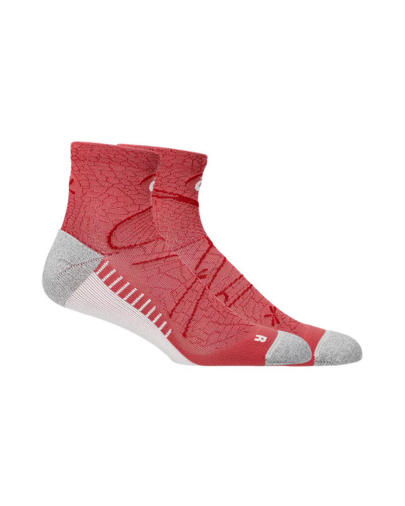 Ponožky ASICS PERFORMANCE RUN SOCK QUARTER sú špeciálne navrhnuté na behanie. Sú pohodlné, priedušné a skvele odvádzajú pot. Vďaka technológii NanoGlide zabraňujú tvorbe pľuzgierov a chránia chodidlo aj pri dlhých behoch. Vysokú mieru komfortu poskytuje zapracovaný šev na vrchnej strane a špeciálne polstrovanie na najviac namáhaných častiach. Ergonomický strih a antibakteriálna úprava samozrejme nesmú chýbať. Aby sa zabezpečilo skvelé prispôsobenie, pravá a ľavá noha sú navrhnuté jedinečne.