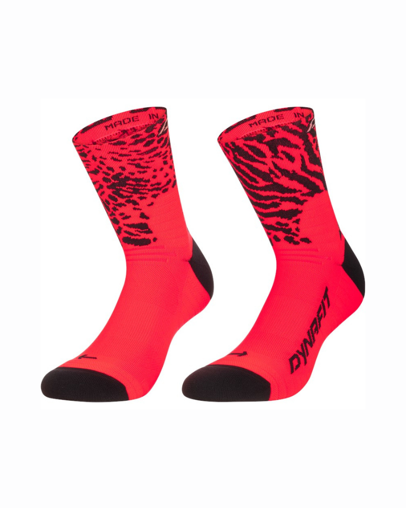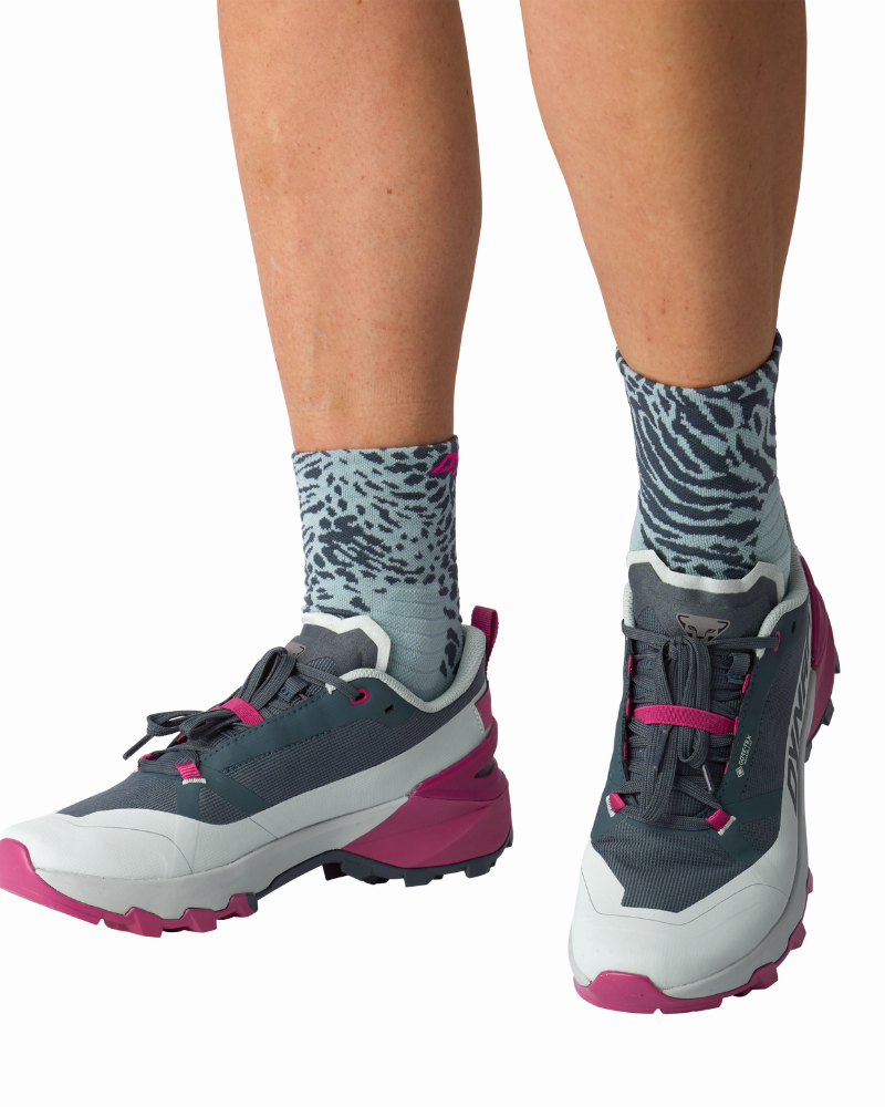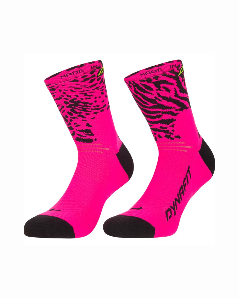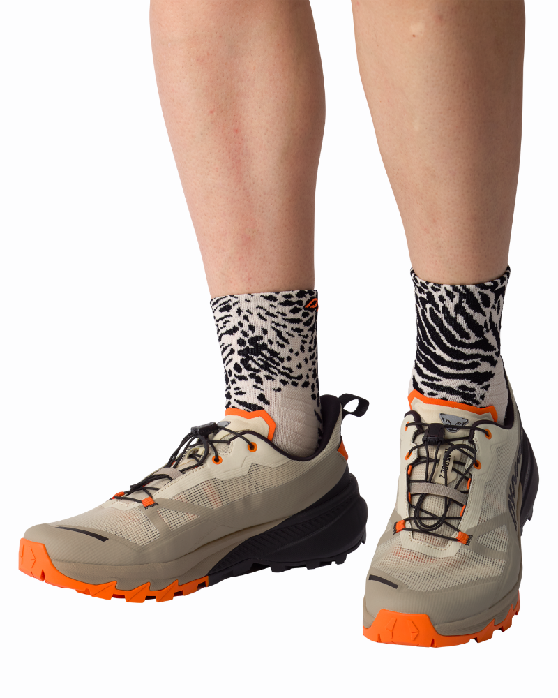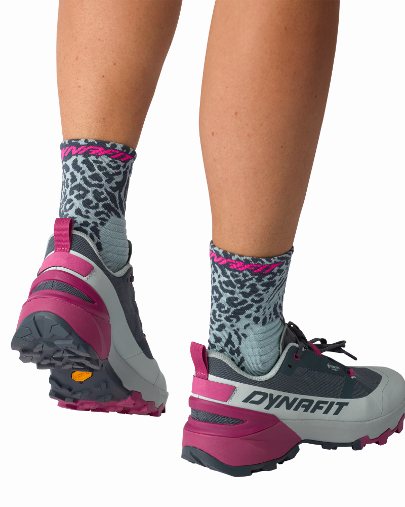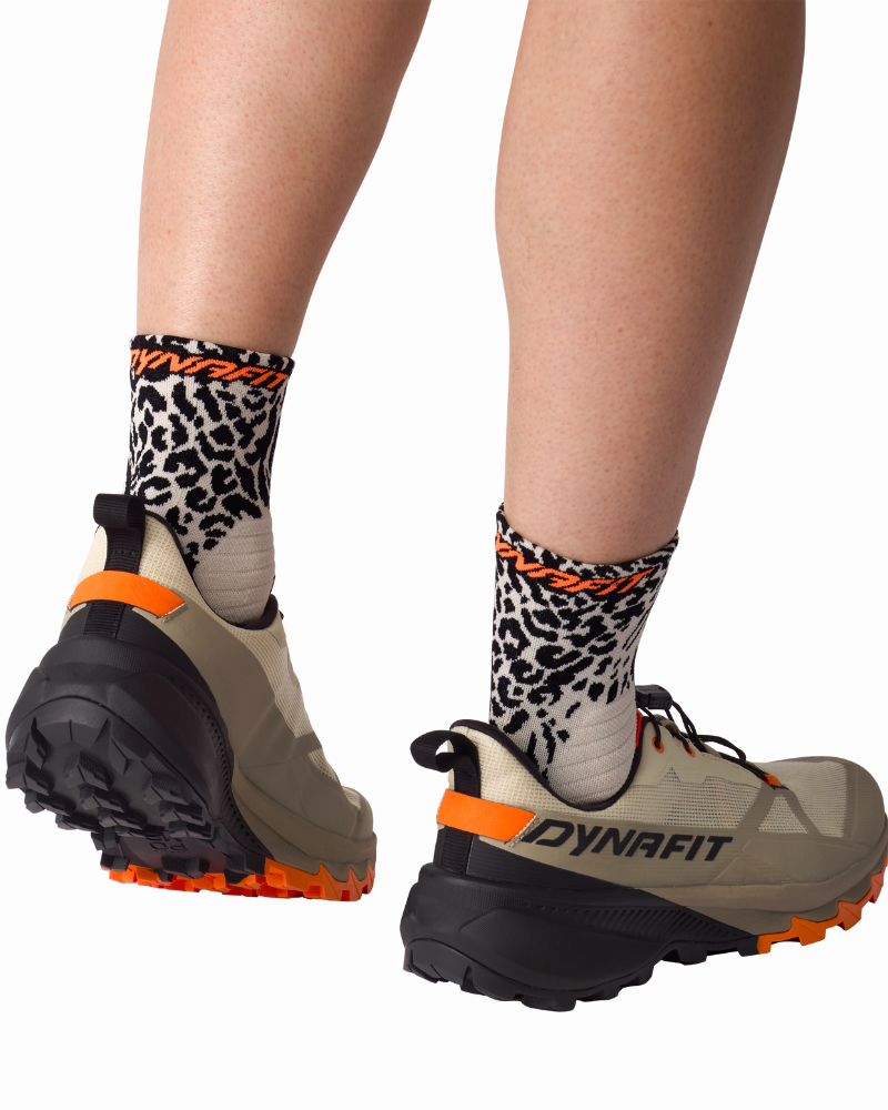 Ponožky DYNAFIT RUN WILD MID SK - ľahké bežecké ponožky sú stredne dlhé a majú vyvážené odpruženie pre ochranu a tlmenie nárazov bez toho, aby pridávali topánkam väčší objem. Strategicky umiestnené sieťované vložky zlepšujú priedušnosť. Anatomický dizajn vľavo a vpravo zaručuje perfektné prispôsobenie bez šmýkania, takže sa vám netvoria pľuzgiere. Vďaka pevnej nylonovej zmesi sú ponožky super odolné a ich pútavý dizajn bude pútať pozornosť.