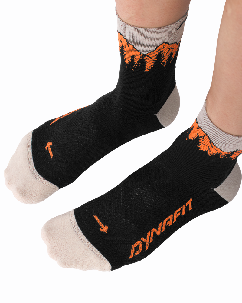 Ponožky DYNAFIT TRAVERSE MID SK kombinujú pohodlie s funkčnosťou a štýlovým vzhľadom. Strategické odpruženie pomáha predchádzať tvorbe tlakových bodov, zatiaľ čo priedušné sieťované oblasti zaručujú skvelú klímu pre chodidlá. Anatomický dizajn vľavo-vpravo zabraňuje šmýkaniu a pľuzgierom a pevná nylonová zmes predlžuje ich životnosť. Dĺžka mid - stredne dlhá, poskytuje extra podporu a ochranu pri každom kroku.