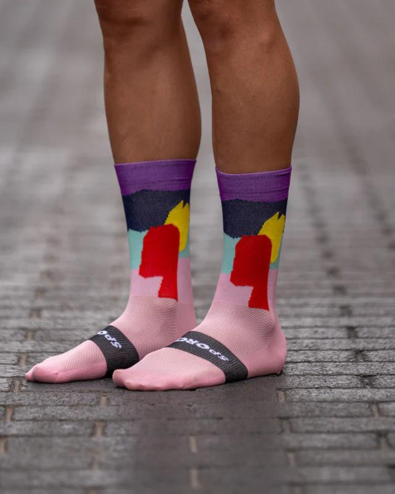 Ponožky SPORCKS ALSACE ROSA sú ultra ľahké cyklistické ponožky so strednou kompresiou. Vyrobené z vysoko kvalitnej nylonovej tkaniny, ktorá optimálne odvádza vlhkosť. Sú plne priedušné, odvádzajú vlhkosť od tela a rýchlo schnú. Zosilnená päta a špička pre väčšiu odolnosť.