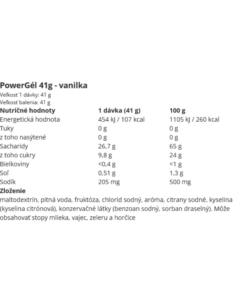 Nezabudni, že počas výkonu môžeš prijať max. 90 g sacharidov za hodinu, v závislosti od jeho dĺžky a intenzity. 1 PowerGel ORIGINAL obsahuje 27 g sacharidov. Neprekračuj odporúčanú dennú dávku - 4 balenia.