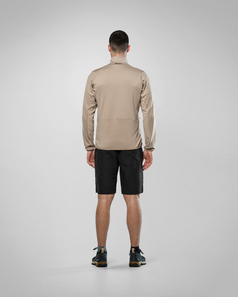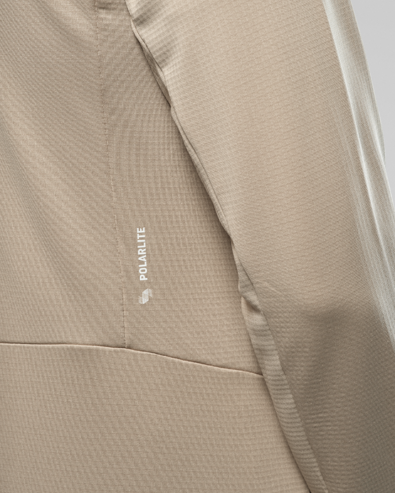 Jej teplá konštrukcia z mikrovlákna Polarlite poskytuje progresívny, textúrovaný vonkajší povrch, zatiaľ čo česaný vnútorný mriežkový vzor zachytáva teplo a zlepšuje odvod vlhkosti tým, že umožňuje rýchlejšie prúdenie vzduchu cez látku.