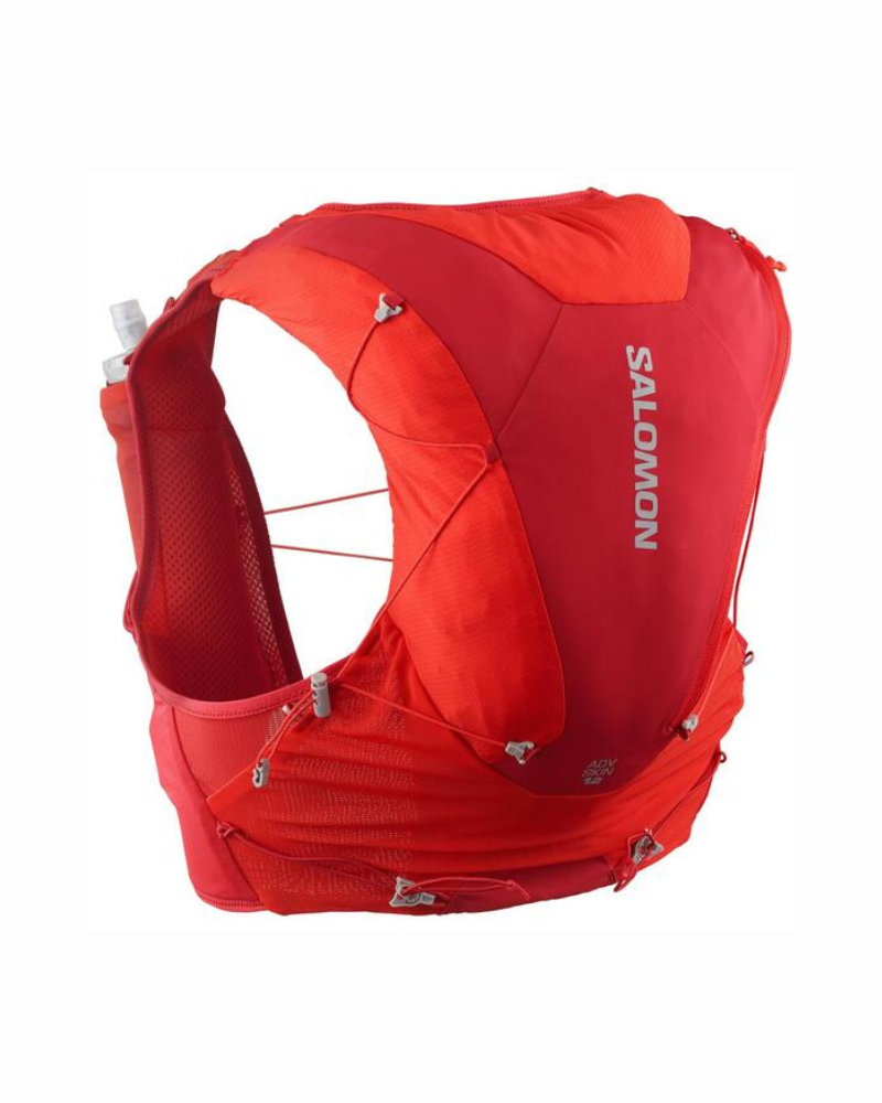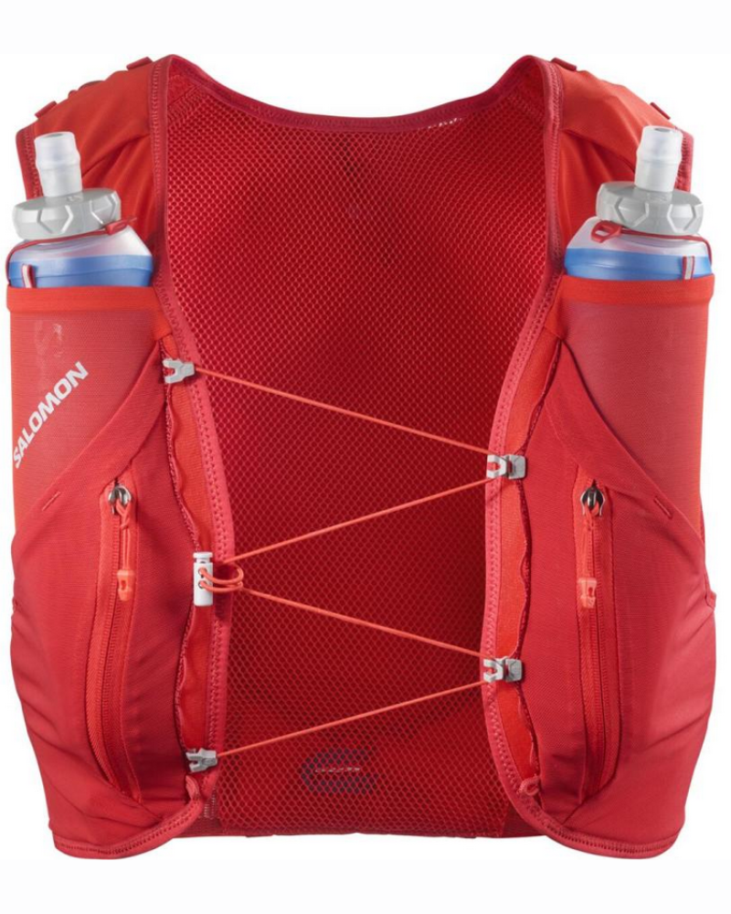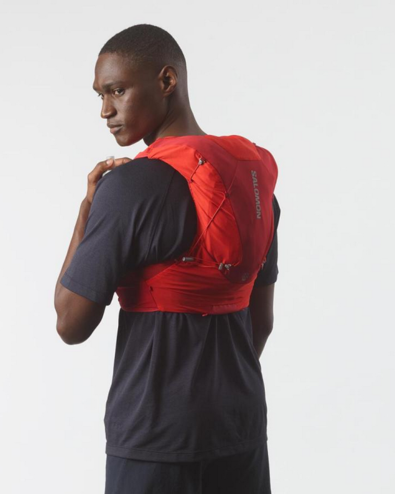 Běžecká vesta Salomon ADV SKIN 12 SET dokonale sedne na tělo sportovce. Tento zásadní a vždy tak efektivní model se nabízí v několika objemech, ze kterých tento je 12 litrů.