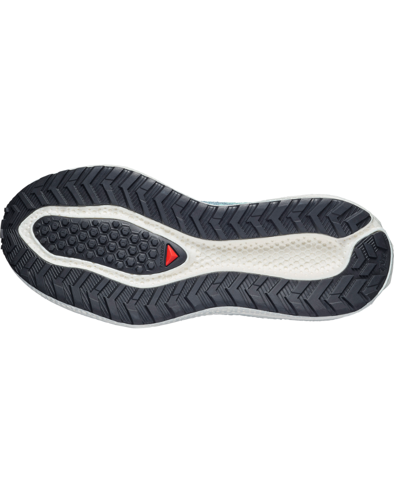 Mezipodešev z pěny optiFOAM² poskytuje vysokou míru tlumení a zároveň citelný návrat energie. Vysoká vrstva pěny spolehlivě tlumí dopady při běhu na tvrdém povrchu, ale díky dynamické odezvě si bota zachovává svižný a živý projev. Drop 8mm podporuje přirozený běžecký styl a komfort při pravidelném tréninku. Zakřivená geometrie Reverzní klenutí, inspirované lyžařským dědictvím Salomonu, napomáhá plynulému přechodu z dopadu do odrazu. Výsledkem je hladký, plynulý krok a pocit lehkosti i při běhu po delších trasách.
