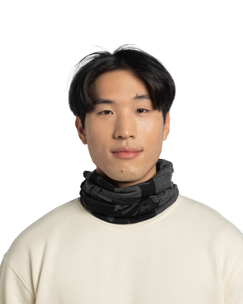 Všestranná šatka Buff Merino Lightweight vo forme tuby s viacerými možnosťami využitia ako šál, čele..