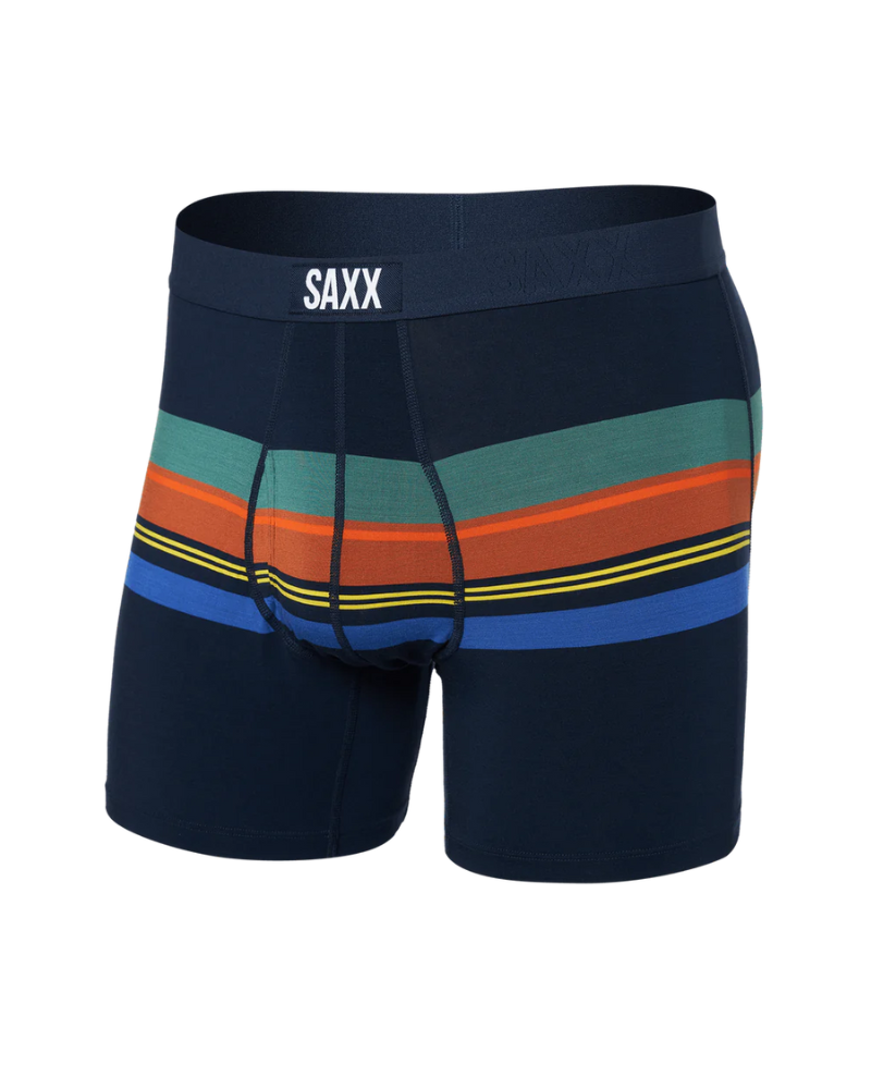 Boxerky SAXX ULTRA SOFT VIBE BB FLY mají uvolněný střih: přiléhavý kolem hýždí a stehen, mírně povoluje u nohy.