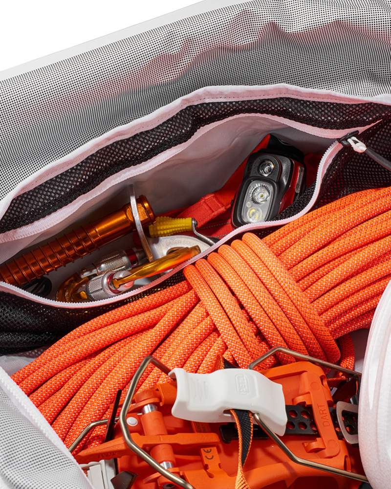 Nomad je dostupný v objemech 40 la 70 la přizpůsobí se vaší misi. Polstrované ramenní popruhy lze přeměnit na batoh a úhledně uložit do kapsy na zip, když se nepoužívají. Čtyři vnější rukojeti usnadňují vytažení z horního úložného prostoru, střešního nosiče nebo hromady výbavy. Vnitřní síťované přihrádky a vnější kapsa na zip s klipem na klíče uchovávají malé nezbytnosti pod kontrolou. Samostatná, opakovaně použitelná taška na výbavu nabízí úložný prostor pro boty, lana nebo prádlo. 40 l je kompatibilní s příručním zavazadlem, zatímco 70 l poskytuje dostatek prostoru pro delší výlety.