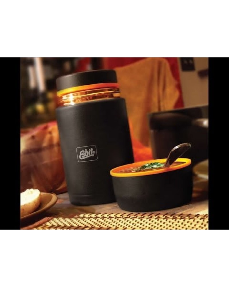Termoska na jídloEsbit FJ500MLs objemem vycházejícím z názvu.Termoskaje vyrobena z kvalitní nerezavějící oceli. Vnější strana termosky Esbit je pokryta speciální černou, matnou protiskluzovou barvou, která zabraňuje náhodnému upuštění při držení v rukavicích.