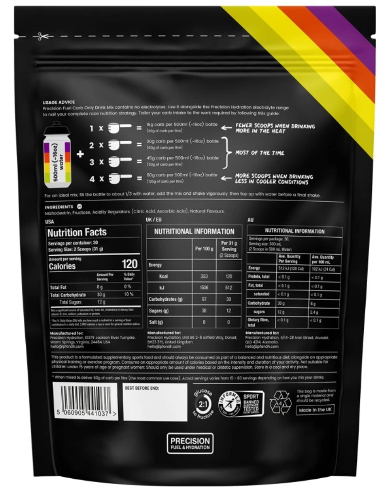 Nápoj PRECISION Carb Only Drink Mix je ideálním řešením, jak si vzít své tankování do vlastních rukou. Vyvinutý ve spolupráci s profesionální cyklistickou společností Lotto Dstny pro Tour de France, nápojový mix Carb Only Drink Mix představuje flexibilnější způsob, jak získat energii.